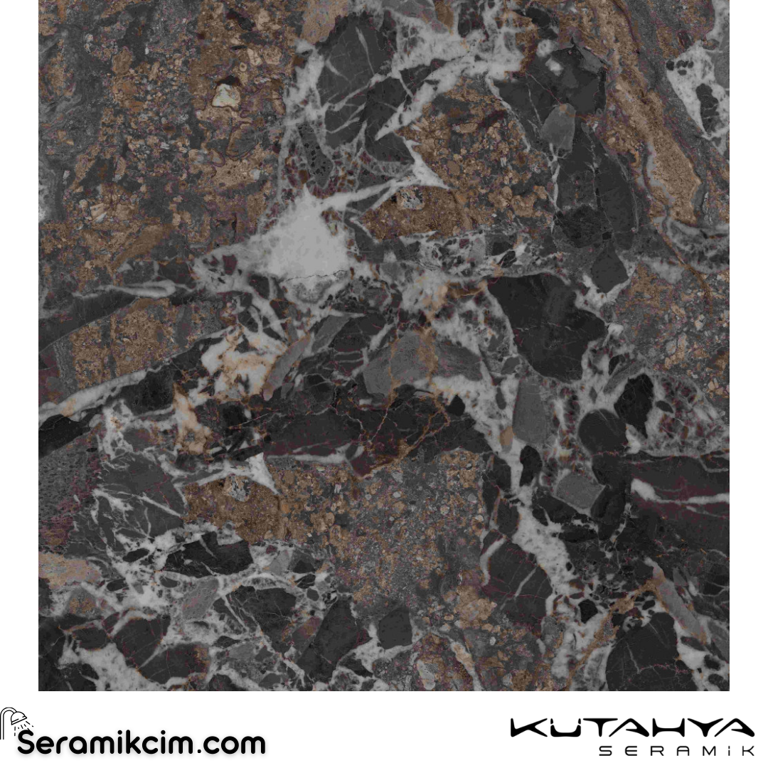 Kütahya Seramik 120x120 Grainstone Kahve Kristal Rektifiye Parlak Nano