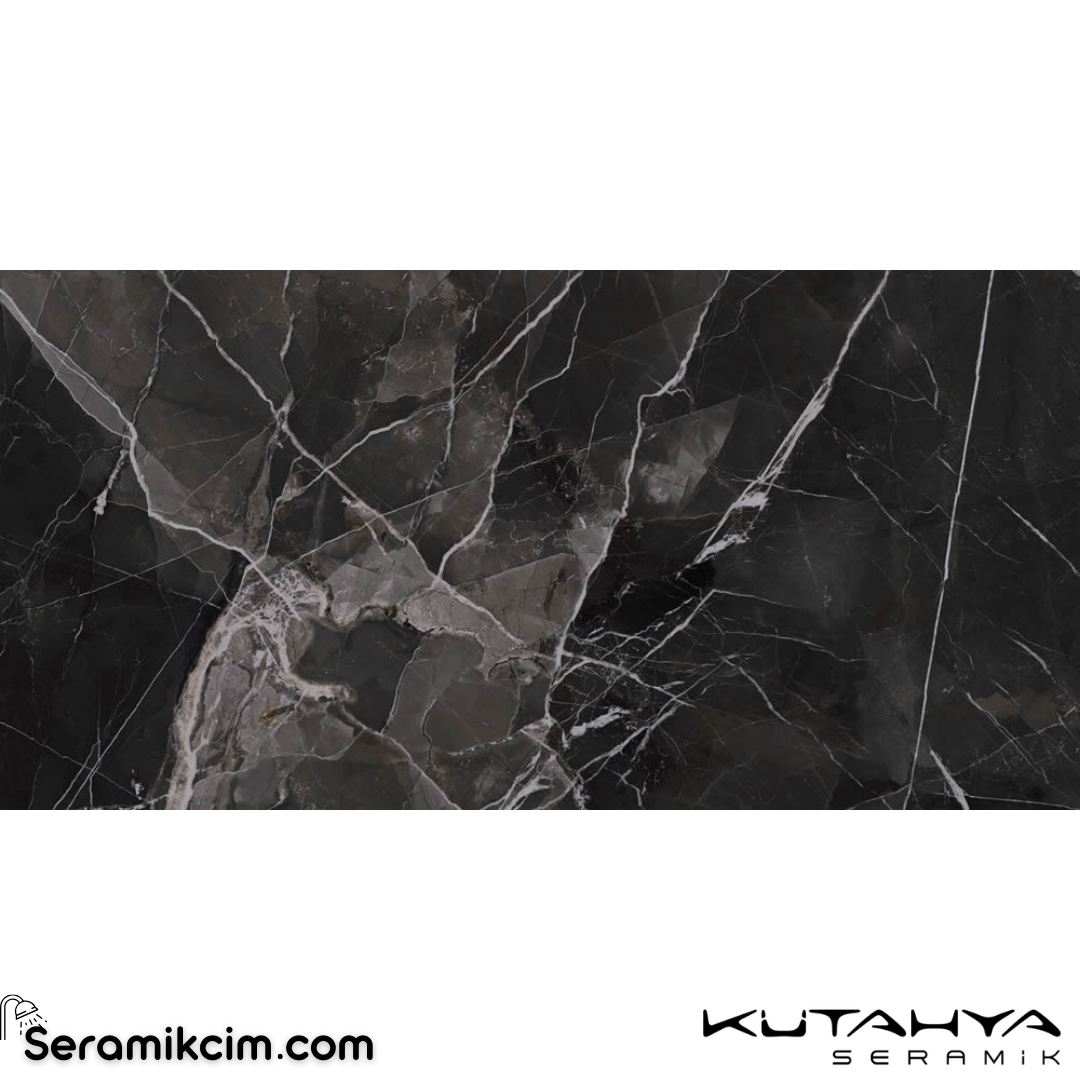 Kütahya Seramik 60x120 Black Calacatta Kristal Rektifiye Parlak Nano