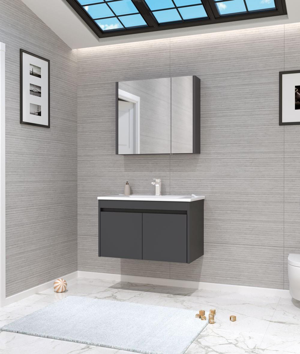 Orka Side 65cm Kapaklı Banyo Dolabı Set Karbon Gri - ORKA.SİDE.65.TK.MTBY