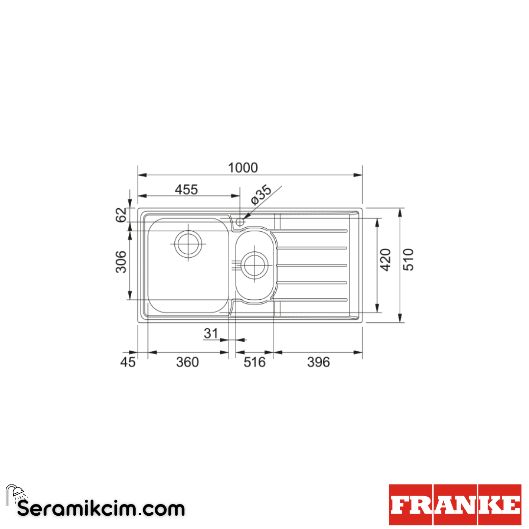 Hazne 2 ölçüsü : sağdan sola 165 mm